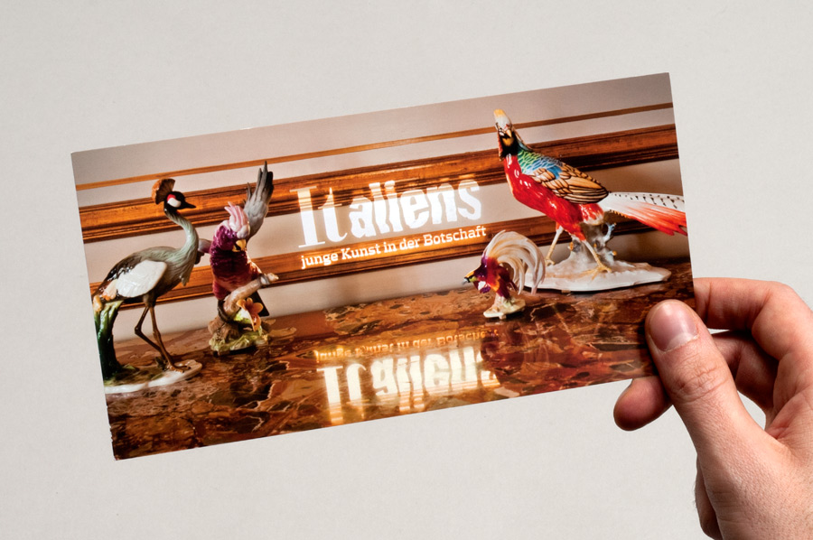 Once the logo was established, it was time to create a flyer for the first exhibition. The embassy is full of classic, traditional Italian architecture and old forniture; I projected the logo into the building’s staid surfaces. Photographs of the results gave me a series of images to correspond with the series of upcoming events.