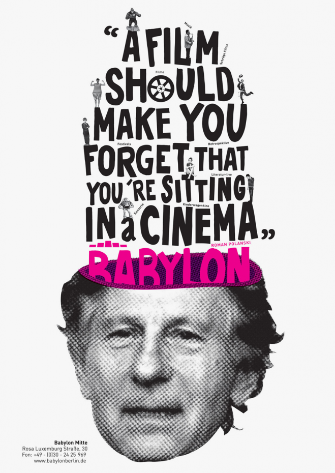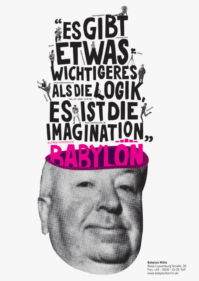 When strategizing on an ad campaign for Kino Babylon, I couldn’t help but think of the cinema as a modern-day Tower of Babel, a gathering place not just for films, but for an eclectic community with diverse interests. The posters I created combine many languages and many formats, showing the heights people reach when they come together.