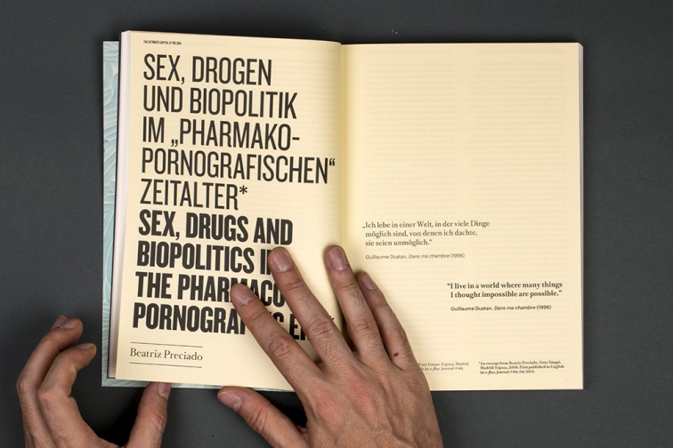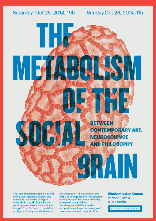 The main title for the exhibit was “the ultimate capital is the sun” and the one for the symposium was “the metabolism of the social brain”. Both were connected to the greek word metabole and investigated the understanding of ‘metabolism’ in contemporary art in a dialogue with philosophical and scientific research beyond Eurocentric rationalization. I took as inspiration some images of bacteria under the microscope, and I was able to find two that were both having similar shape to the sun and to the brain. These together with the typography became the main identity of the exhibition. The catalogue is about 160 pages and features texts by Dipesh Chakrabarty, Reza Negarestani and Beatriz Preciado.